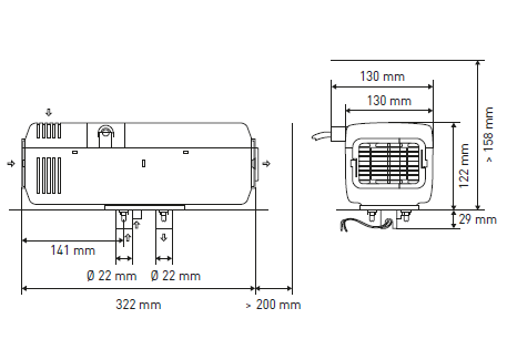 Nagrzewnica kabinowa z zewnętrznym zasilaniem olejem napędowym – Webasto art. 100MC3322
